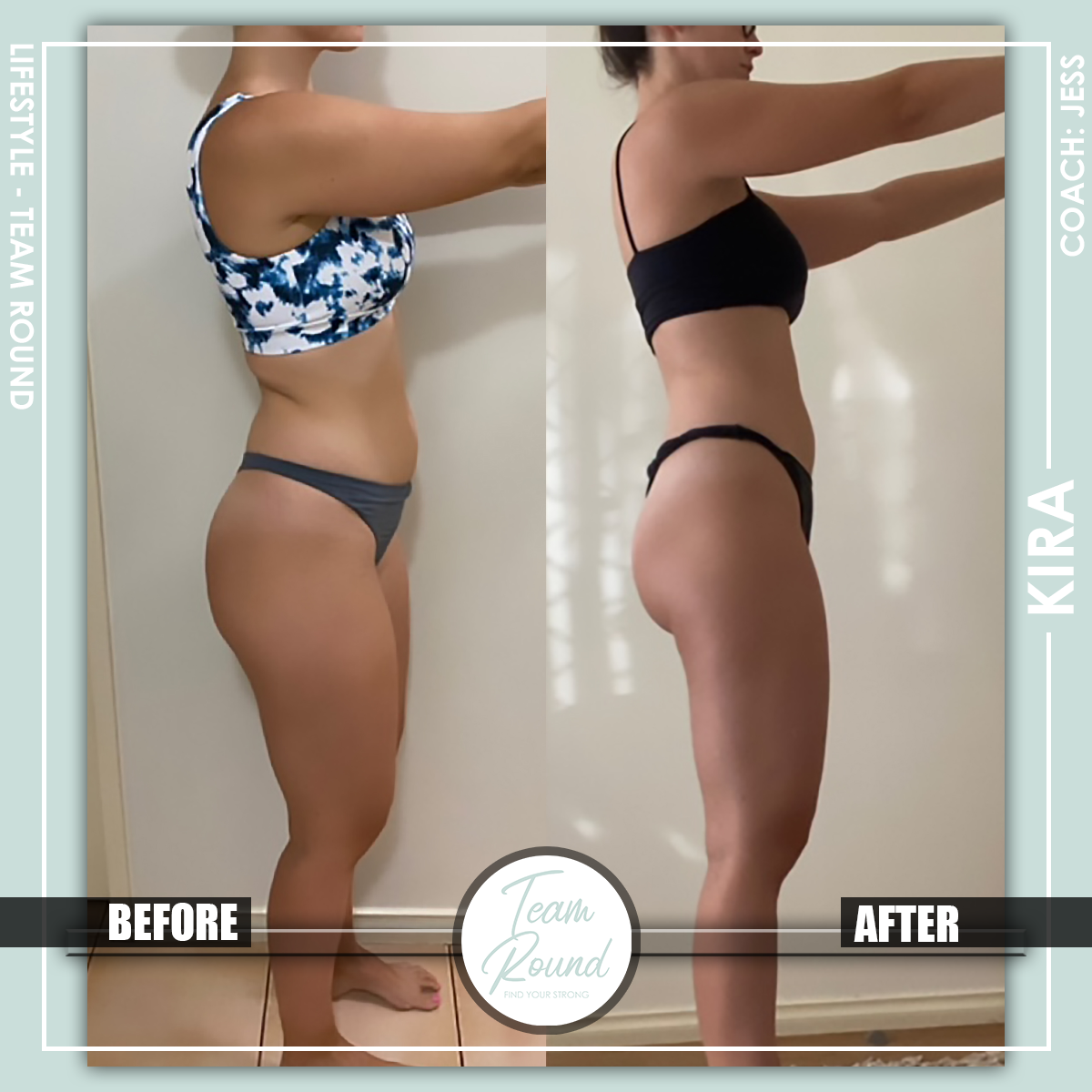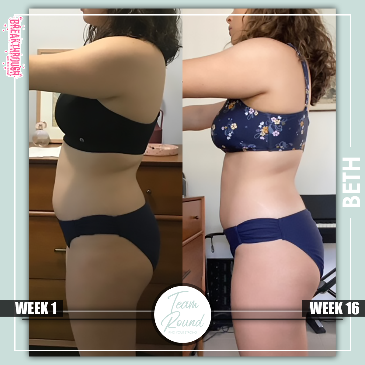 I started my journey with Team Round and my coach Sam 3 months ago. I was stuck in a cycle of binge eating to cope with stress and lost all my confidence after having my baby 2 years ago and I didn’t want to be in this anymore.